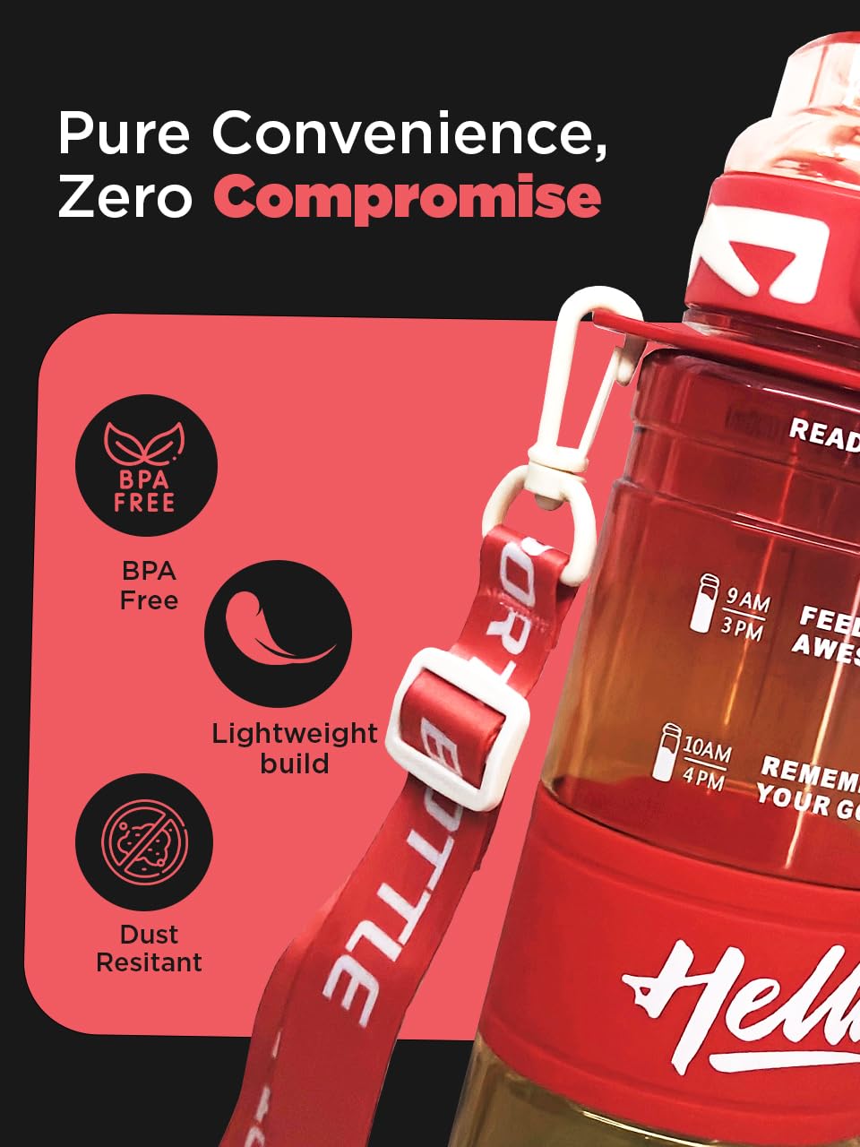 • Motivational Quote & Time Marker : Equipped with a time marker and a unique inspirational quote, this bottle helps you monitor your daily water intake and stay on track with your fitness goals.