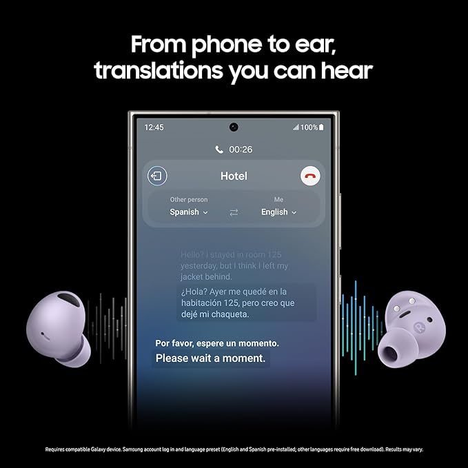 • PHONE TO EAR, TRANSLATIONS YOU HEAR: Phoning a relative back home or calling in reservations while traveling , break down language barriers w/ Galaxy Buds & Live Translate; Using the Samsung Phone app, hear real-time translations through your Buds¹