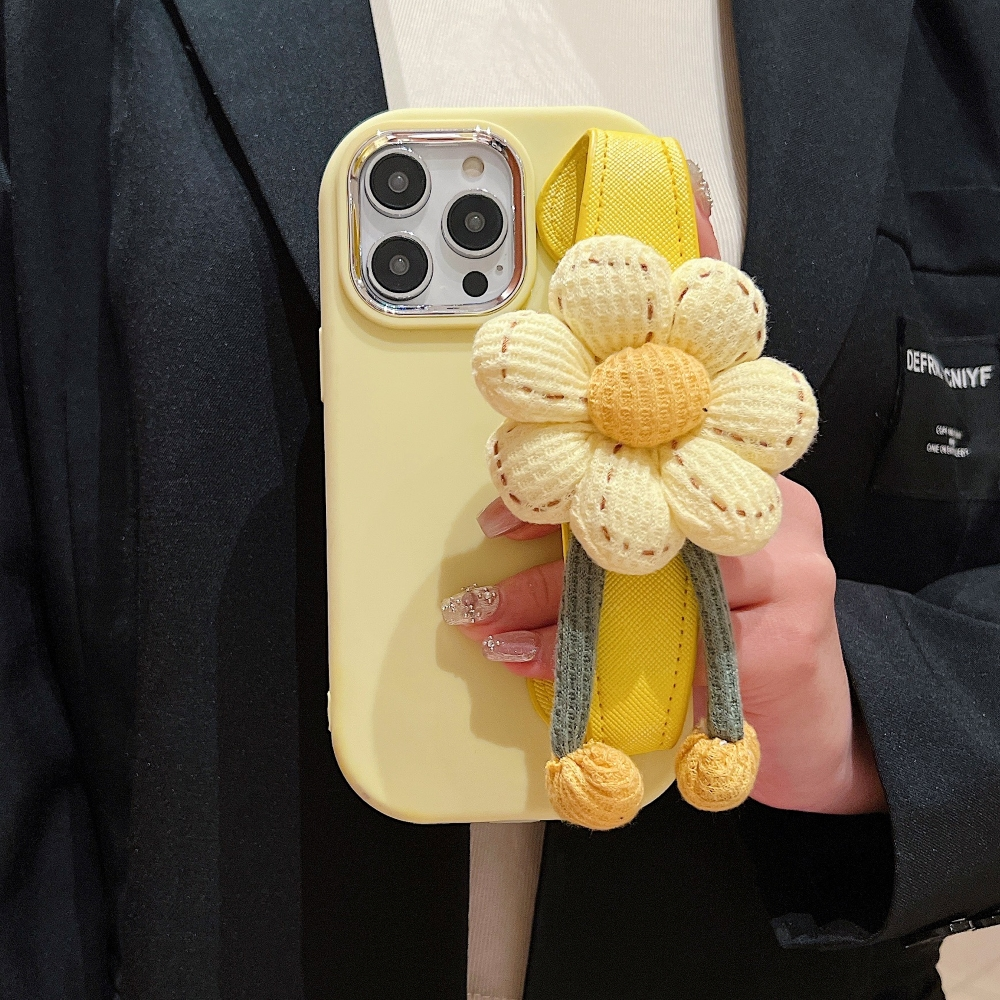 Silicone Metal Ring Flower Wrist Strap Holder Phone Back Case