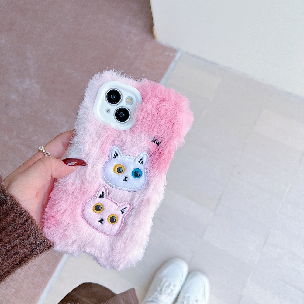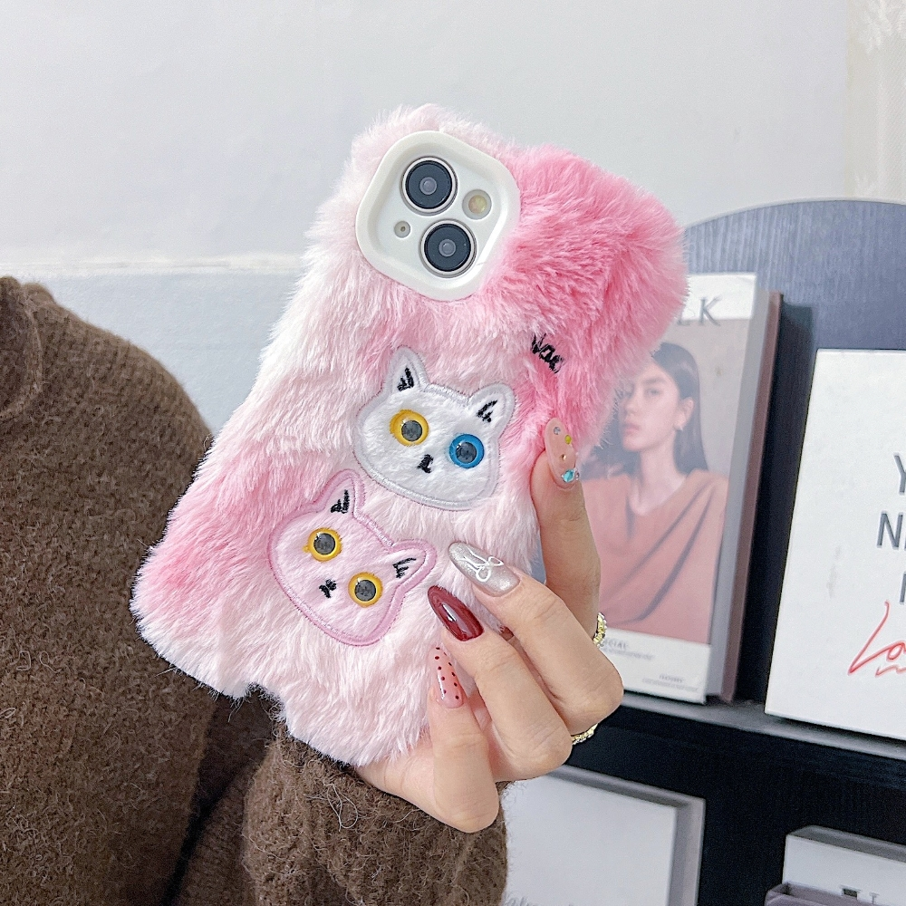 Warm Fluffy Furry Cat Embroided Camera Protection Phone Case